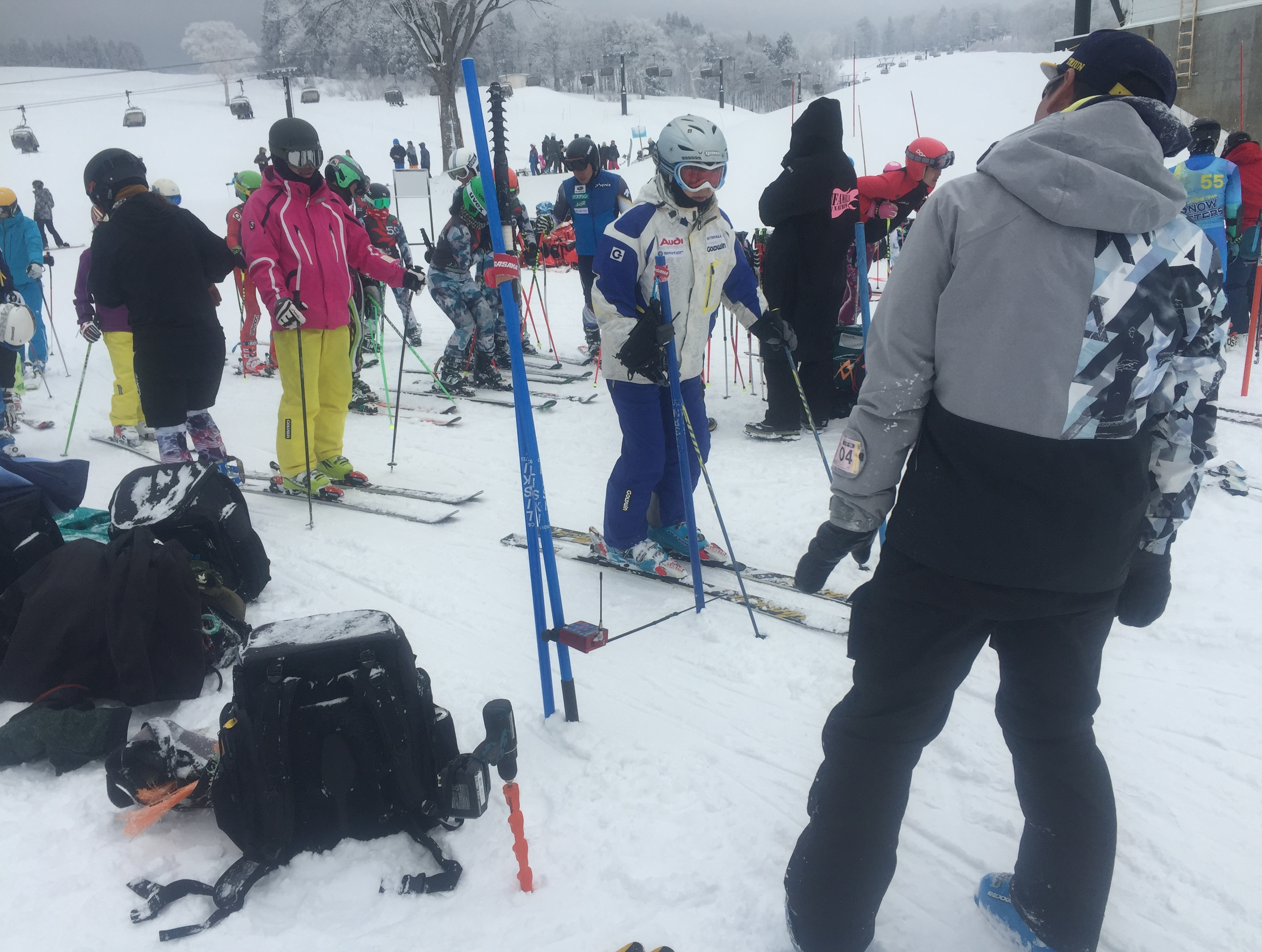 決められたゲートをどれだけスピードをロスせずに滑るかというテクニックが必要です。